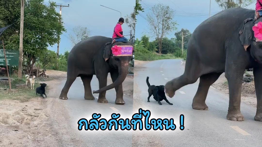 ผู้ใช้ TikTok @poppy_sirinapa โพสต์คลิปช้างพังน้ำทิพย์มาเจอเจ้าถิ่นสุดห้าว เจ้าดำก็พร้อมไฝว้ใส่หมด อีกฝั่งก็กลัวที่ไหนออกท่าดีดสวนกลับ