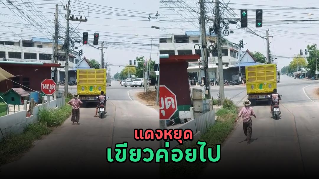 ผู้ใช้ TikTok @tawanlasurin โพสต์คลิป เมื่อคุณยายติดไฟแดง ปฏิบัติตามกฎจราจรเป๊ะ ๆ แดงหยุดพอเขียวค่อยไป ปลอดภัยไว้ก่อน