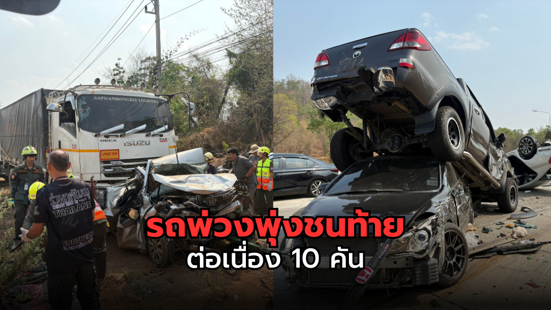 วันที่ 11 เมษายน 2569 เวลาประมาณ 14.40 น. ศูนย์วิทยุ สภ.เถิน รับแจ้งอุบัติเหตุรถบรรทุกพ่วงพุ่งชนท้ายรถยนต์หลายคันต่อเนื่อง บริเวณถนนพหลโยธิน (ขาขึ้น) กม.601 ม.2 ต.แม่วะ อ.เถิน จ.ลำปาง เจ้าหน้าที่พนักงานสอบสวน แพทย์เวร รพ.เถิน และหน่วยกู้ชีพกู้ภัยจากพื้นที่และพื้นที่ใกล้เคียงรุดเข้าตรวจสอบที่เกิดเหตุทันที