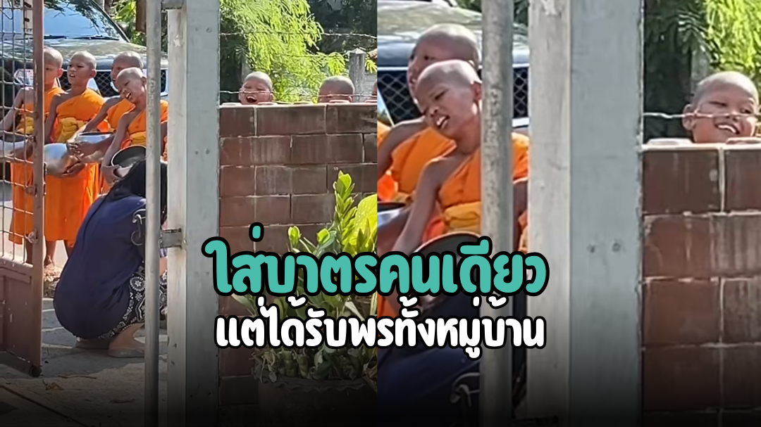 ผู้ใช้ TikTok @hi_j_hi โพสต์คลิปเณรน้อยภาคฤดูร้อนกำลังให้พรหลังใส่บาตร คลิปนี้กลายเป็นไวรัลเพราะเสียงสวดนั้นดังมาก ขณะที่ชาวบ้านใส่บาตรถัดไปอีกหลังยังได้ยินเสียง ชาวเน็ตแซว น่าจะได้พรกันทั้งหมู่บ้าน ทั้งประเทศแล้ว