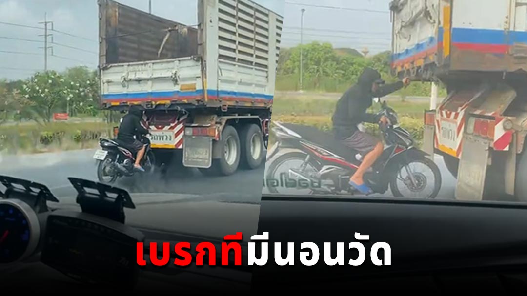 ผู้ใช้ TikTok @wisarut1987 โพสต์คลิปมอเตอร์ไซค์ขี่จี้ท้ายรถบรรทุกสุดหวาดเสียว ตามติดแทบสิงร่าง อยากวัดดวงหรือแค่ไม่กลัวตายก็ไม่รู้ แต่แบบนี้อันตรายมาก