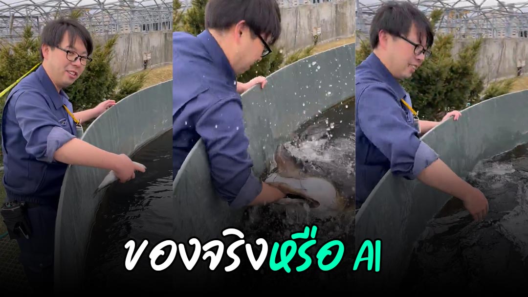 หลายคนสงสัย คลิปที่ พนง.ให้อาหารปลายักษ์แล้วโดนงับทั้งแขนแต่ไม่เป็นอะไรเลยนั้น เป็นของจริงหรือแค่ AI สร้างขึ้น