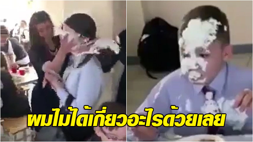 แก๊งเพื่อนจัดเซอร์ไพรส์เพื่อนสาวปิดตาพามาศูนย์อาหาร ก่อนโดนเอาเค้กปาใส่หน้า แต่ที่ฮาเค้กไม่ได้โดนที่เพื่อนสาวคนเดียว แต่กลับไปโดนโต๊ะข้าง ๆ เต็มหน้า "ยังกินข้าวไม่เสร็จ ตบของหวานให้ซะแล้ว"