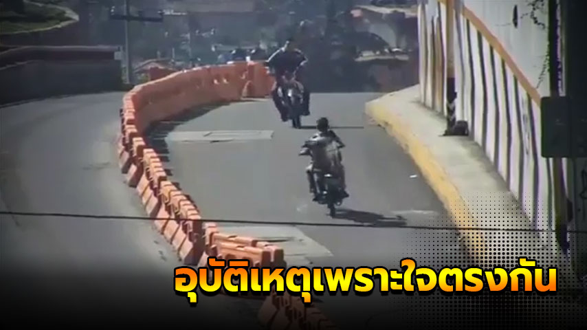 อุบัติเหตุในเม็กซิโก ผู้ขับขี่รถจักรยานยนต์สองคนไม่สวมหมวกกันน็อก ต่างคนต่างมาในทิศทางตรงกันข้าม แต่จังหวะหักหลบกันใจดันตรงกัน เลยชนกันเต็ม ๆ