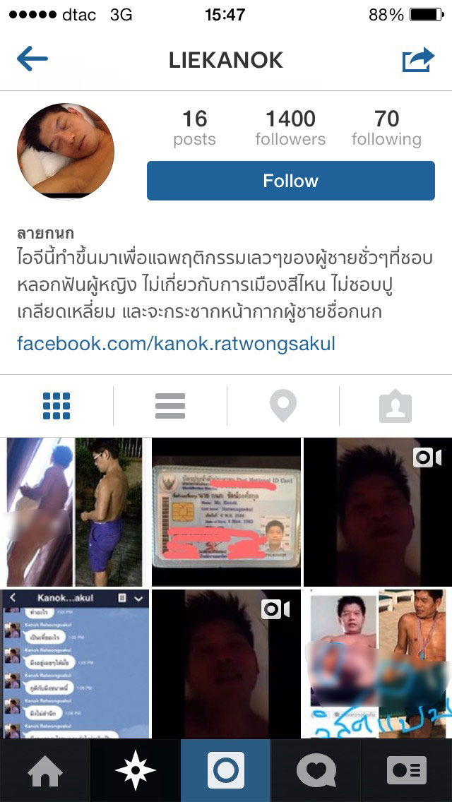 กลายเป็นคำฮิตที่ถูกเสิร์ชหาอย่างมากในชั่วข้ามคืน สำหรับคำว่า liekanok konoklie ไอดีอินสตาแกรมฉาว ที่อัพโหลดรูปภาพชายคนหนึ่งหน้าคล้ายกับผู้ประกาศข่าวชื่อดัง "กนก รัตน์วงศ์สกุล" กำลังขัดนกเขาโชว์ แถมยังมีภาพขณะเปลือยเปล่าอีกหลายภาพ โดยผู้อัพโหลดนั้น อ้างตนว่าเป็นหญิงสาวที่ตกเป็นเหยื่อของนายกนกให้มีเพศสัมพันธ์ด้วย แต่ทั้งนี้ เมื่อภาพดังกล่าวหลุดออกไป นายกนกก็โพสต์ข้อความยืนยันว่า ภาพดังกล่าวเป็นภาพตัดต่อ ใครเชื่อก็โง่แล้ว