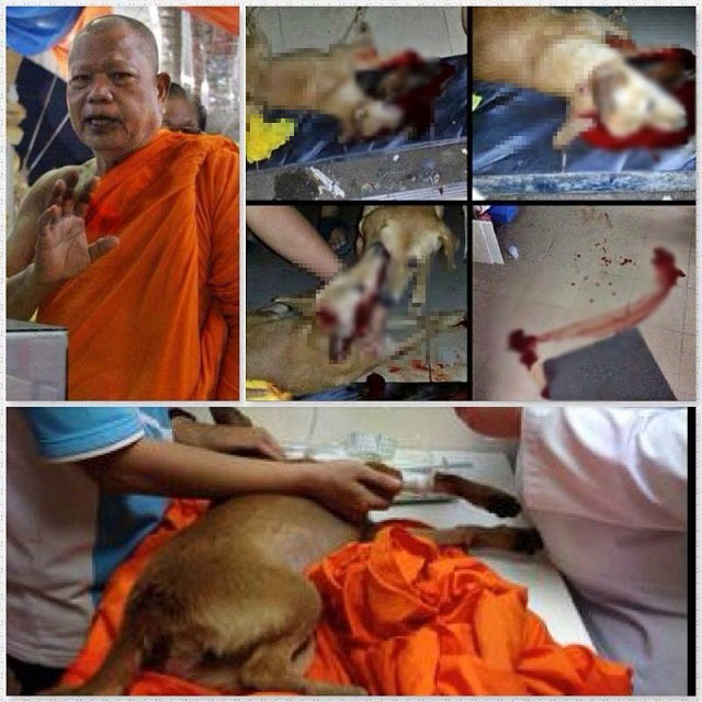 เมื่อวันที่ 1 เมษายน 2557 ผู้สื่อข่าวรายงานว่า ขณะนี้ในโลกโซเชียลเน็ตเวิร์กได้มีการแชร์และส่งต่อคลิปสุดโหดของพระสงฆ์รูปหนึ่งก่อเหตุใช้ไม้หน้าสามฟาดใส่สุนัขอย่างแรง จนสุนัขบาดเจ็บสาหัส กะโหลกศีรษะแตกและเลือดคั่งในสมอง สร้างความหดหู่ใจให้ผู้ชมคลิปเป็นอย่างยิ่ง