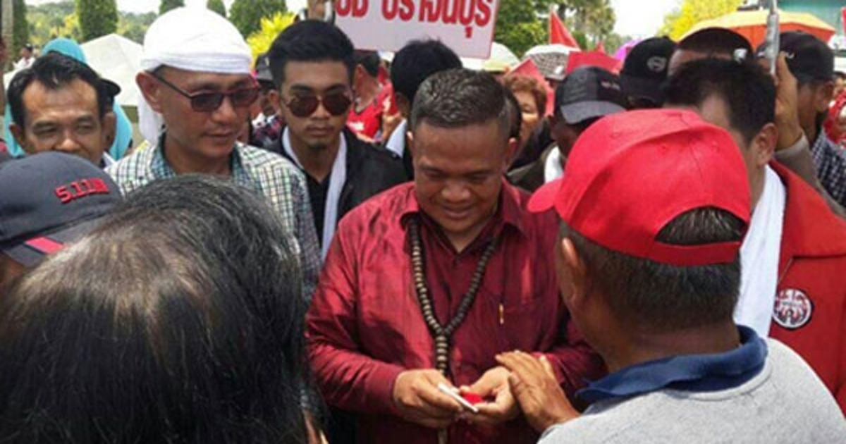 ประธาน นปช. ถูกหนุ่มมหาสารคาม ปาหินใส่ เจ้าหน้าที่ตำรวจคุมตัวสอบสวนแล้ว ขณะบรรยากาศการชุมนุมกลุ่ม นปช. คนทยอยร่วมต่อเนื่อง