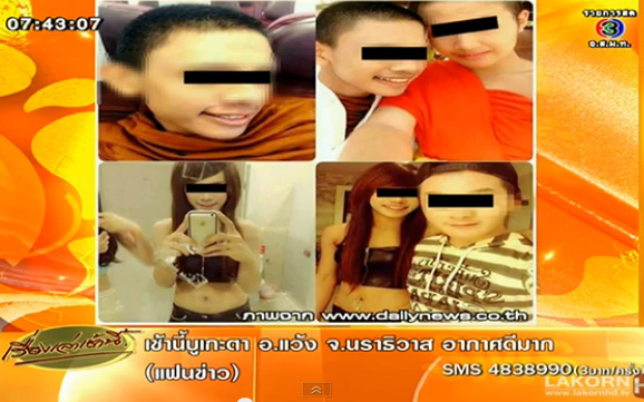 เมื่อวานนี้ (15 เมษายน 2557) นายสงกรานต์ อัจฉริยะทรัพย์ ประธานเครือข่ายต่อต้านบ่อนทำลายชาติ ศาสนา พระมหากษัตริย์ เปิดเผยว่า ตนได้รับร้องเรียนจากสมาชิกเครือข่ายฯ ว่ามีการแสดงพฤติกรรมไม่เหมาะสมของกระสงฆ์ ผ่านทางเฟซบุ๊ก ชื่อ นู๋ร๊ากผัวเขา ผัวเขาก้อร๊ากหนู และเมื่อตนเข้าไปตรวจสอบ พบว่าเจอภาพแบ่งเป็น 4 รูปในกรอบเดียวกัน ด้านบนเป็นบุคคลแต่งตัวห่มจีวรคล้ายพระสงฆ์ กรอบล่างเป็นบุคคลที่คล้ายพระสงฆ์ในกรอบบน แต่แต่งกายเป็นหญิง ใส่วิกผมยาว ใส่เสื้อเกราะอกเอวลอยสีดำ กางเกงขาสั้นสีดำ และมีการเจาะสะดือด้วย