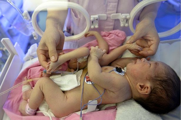 รายงานระบุว่า ทารกรายนี้เป็นเพศชาย ถือกำเนิดเมื่อวันที่ 2 เมษายนที่ผ่านมา ด้วยน้ำหนัก 3 กิโลกรัม พร้อมกับความผิดปกติทางร่างกาย นั่นคือ มี 4 ขา และ 4 แขน โดยงอกออกมาบริเวณด้านขวาของลำตัว ซึ่งภาวะดังกล่าวนี้ เกิดจากความผิดปกติที่ฝาแฝดของหนูน้อย หยุดพัฒนาการตั้งแต่ในครรภ์และไม่ยอมแยกตัวออกเป็นสอง จึงทำให้หนูน้อยยังมีอวัยวะของฝาแฝดของตัวเองติดมาด้วยนั่นเอง