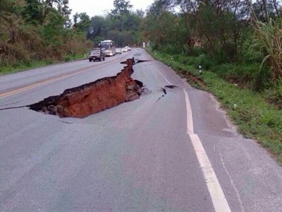 ทางหลวงหมายเลข118 เชียงใหม่-เชียงราย เสียหาย ว.4 ยานพาหนะด้วยความระมัดระวัง ภาพประกอบจาก ทวิตเตอร์ @loving_friday