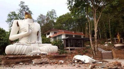ไม่แน่ใจว่าวัดอะไร อยู่ที่ อ.พาน เชียงราย เศียรพระหัก จากแรงสั่นสะเทือนเหตุแผ่นดินไหว ภาพประกอบจาก ทวิตเตอร์ @Nalinee_PLE