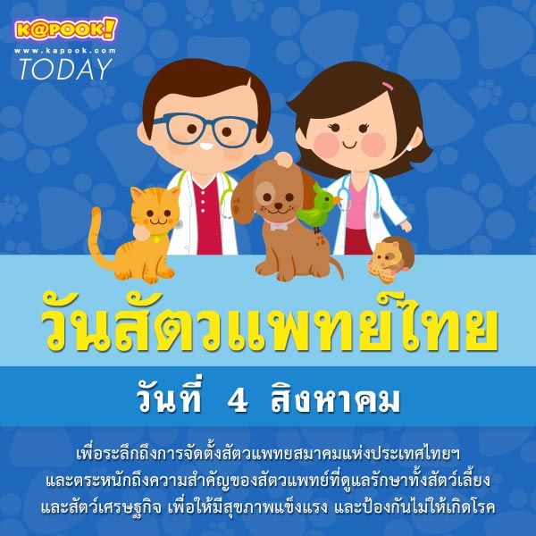 สิงหาคม เป็น วันสัตวแพทย์ไทย ซึ่งกระปุกดอทคอมมีเกร็ดความรู้เกี่ยวกับ