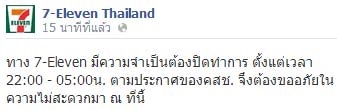 เซเว่นประกาศปิดให้บริการ 22.00 05.00 น. หลังการประกาศเคอร์ฟิวของ คณะรักษาความสงบแห่งชาติ (คสช.)