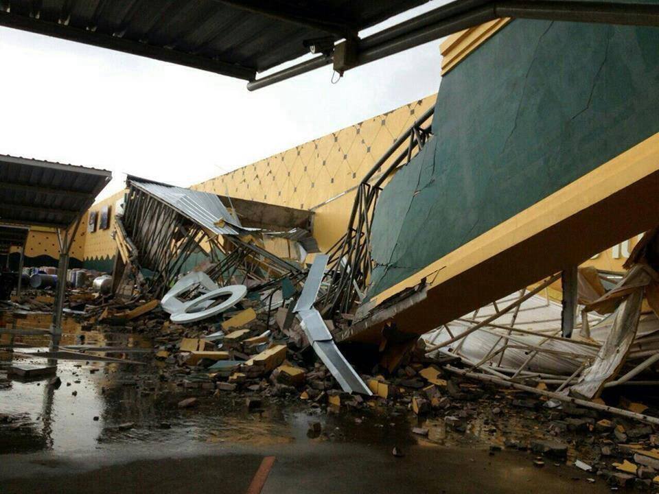 พายุที่พัดกระหน่ำอำเภอเมืองสุรินทร์ ในช่วงเย็นวันที่ 13 พฤษภาคม 2557 ได้ทำให้ห้างโกลบอลเฮ้าส์ส่วนหนึ่งพังถล่มลงมาทับพนักงานและลูกค้าที่เข้ามาใช้บริการภายในห้าง ซึ่งในจำนวนนี้มีพ่อ-แม่-ลูกที่กำลังเดินเลือกซื้อของอยู่ภายในห้างด้วย สุดท้ายแล้วจากเหตุการณ์ส่งผลให้มีผู้เสียชีวิต 7 ราย และเมื่อตรวจสอบสาเหตุก็พบว่า โครงสร้างหลังคาของห้างไม่มีเสาค้ำยันตรงกลาง ดังนั้นเมื่อฝนตกลงมาจึงไม่สามารถรับน้ำหนักเอาไว้ได้