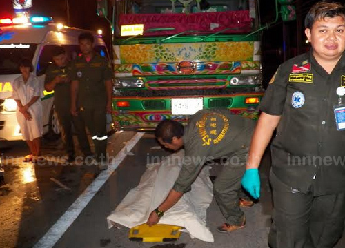 ที่เกิดเหตุพบชายไม่ทราบชื่ออายุประมาณ 25-30 ปี ใส่เสื้อยืดคอกลมสีดำลายรูปกุญแจ กางเกงยีนส์ขายาวสีดำติดอยู่บนหลังคารถสิบล้อพ่วงบรรทุกข้าวสารของบริษัท สินวายุภัค หมายเลขทะเบียนตัวแม่ 84-9114 สุพรรณบุรี และหลายเลขทะเบียนตัวลูก 84-9115 สุพรรณบุรี เจ้าหน้าที่มูลนิธิร่วมกตัญญูจึงได้ช่วยกันนำตัวลงมาและปั๊มหัวใจ แต่ไม่ทัน เสียชีวิตในเวลาต่อมา