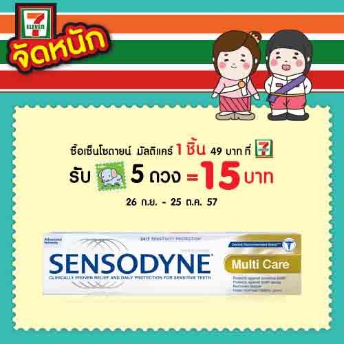 สุดคุ้ม!ซื้อยาสีฟันเซ็นโซดายน์ มัลติ แคร์ที่ 7-11 ทุกสาขาวันนี้ รับฟรี แสตมป์ 5 ดวง มูลค่า 15 บาท ตั้งแต่วันนี้ 25 ตุลาคมนี้เท่านั้น