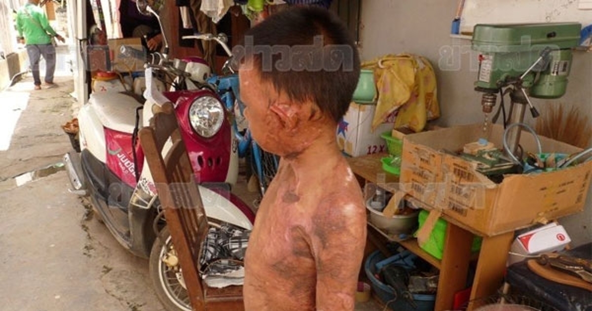 แม่เด็ก 7 ขวบ ที่ จ.พิจิตร วอนผู้ใจบุญช่วยลูกชายที่ทนทรมานเป็นแผลพุพองทั้งตัว และยังมีน้ำหนองไหลออกมาตามใบหู หลังปีที่แล้วไปวิ่งเล่นสะดุดสายท่อแก๊สทอดปาท่องโก๋ จนตกลงไปในกระทะร้อน ๆ