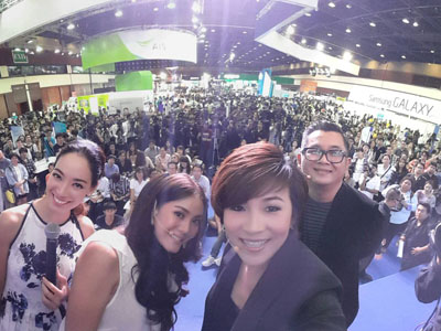 4. เลือกอุปกรณ์ อุปกรณ์ในการถ่ายก็มีผลเยอะต่อความสวยงามของภาพ ถ้ากล้องหน้าไม่ชัดแถมมุมแคบ ถ่ายแล้วหน้าไม่เนียน กดถ่ายก็ยาก กดทีไรก็เบลอ เก็บหน้าได้ไม่กี่คน ก็เห็นทีจะถ่ายภาพ Groupfie ออกมาให้ดีลำบาก สมัยนี้มีอุปกรณ์เสริมเป็นไม้Selfie ก็ดูพยายามไป ไปไหนต้องพกไปด้วย หยิบออกมาถ่ายบางทีก็โดนคนรอบข้างแอบเหล่เหมือนกันนะว่า บ้าถ่ายรูปเกินควร สมัยนี้ไฮเทคกว่านั้น เพราะสมาร์ทโฟนอย่างซัมซุง Galaxy Note 4 มีฟังก์ชั่นที่เรียกว่าWide Selfie หรือ Selfie แบบพาโนรามา 120 องศา ขอบอกว่ามันเลิศมากสำหรับการถ่ายรูปตัวเอง เพราะไม่ว่าจะถ่าย Selfie ตัวเองกับวิวด้านหลังงามๆ หรือจะถ่ายรวมญาติรวมเพื่อนก็สามารถรวมได้เป็นสิบๆ คนแถมยังเห็นวิวข้างหลังแบบสวยๆ ชิลๆ เลย ไม่ต้องพยายามยัดหน้าลงไปในจอด้วยนะ แถมจะแอ็คชั่น บิดเอว โบกมือยังไงก็ออกมาสวย ทั้งยังใช้ Heart Rate Sensor ด้านหลังเป็นที่กดชัตเตอร์ช่วยป้องกันภาพเบลออีกด้วย ที่สำคัญจอใหญ่สะใจมองเห็นหน้าทุกคนสวยครบ