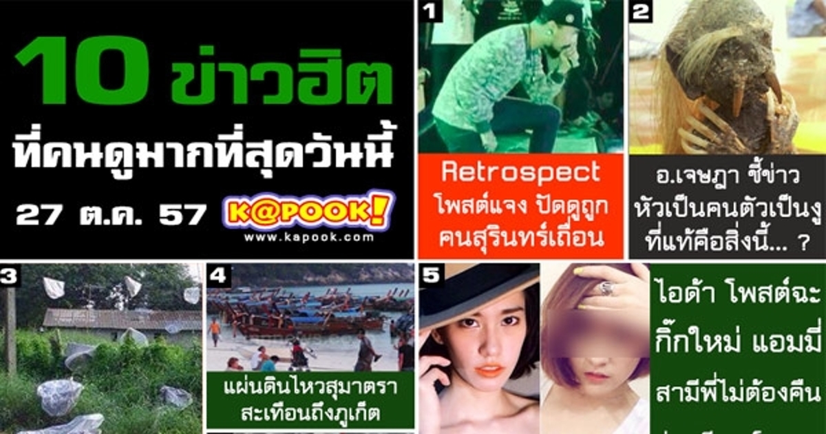 ประเด็นฮอตวันนี้ (27 ตุลาคม 2557) กับข่าวฮอต ไอด้า โพสต์ฉะกิ๊กใหม่ แอมมี่ สามีพี่ไม่ต้องคืน-คู่กรณีออกโรงแจง หรือดราม่าโคมยี่เป็ง ที่ด้านผู้จัดงานลอยโคมยี่เป็ง ยันจัดทีมเก็บโคม-ไม่ได้ปล่อยทิ้งเป็นขยะ และภาพเรียกเลือดสาว ๆ ของหนุ่มณเดชน์ ที่มาในเสื้อขาวซีทรู