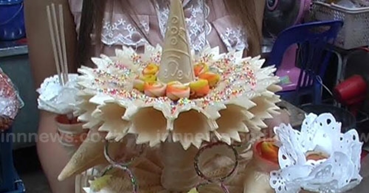 แม่ค้าทำกระทงจากกรวยไอติมยอดขายพุ่ง (ไอเอ็นเอ็น)