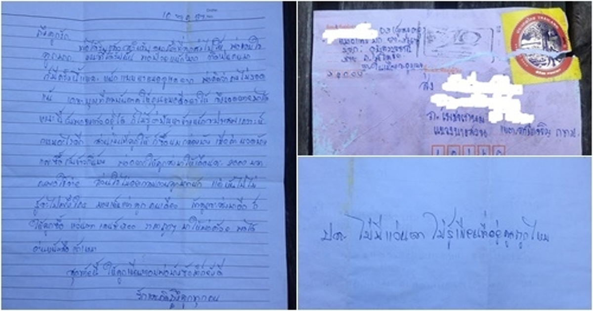 ป.ล. ไม่มีแว่นตา ไม่รู้เขียนที่อยู่ลูกถูกไหม"
