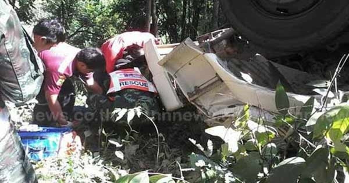 เกิดเหตุ รถพ่วงเสียหลักตกข้างทางดอยรวก เสียชีวิต 2 ศพ สาหัส 1 ราย