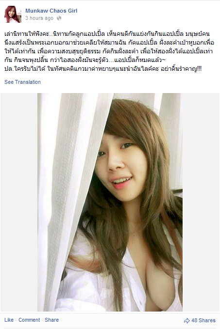ทั้งนี้ ภายหลังจาก "น้องมันแกว" โพสต์ข้อความดังกล่าวออกไป ปรากฏว่ามีคนเข้ามาเขียนคอมเม้นท์ แสดงความเห็นกันอย่างถล่มทลาย ทั้งเห็นด้วยและไม่เห็นด้วย รวมถึงมีคนไลค์หลายหมื่นไลค์อย่างรวดเร็ว