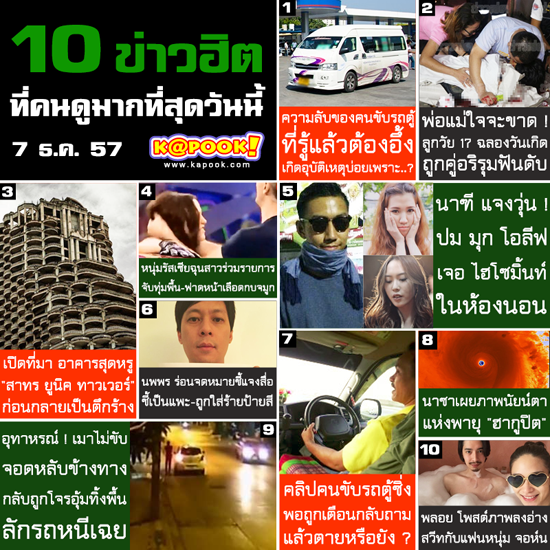 10 ข่าวฮิตที่คนดูมากที่สุด เว็บ Kapook.com ประจำวันที่ 7 ธันวาคม 2557