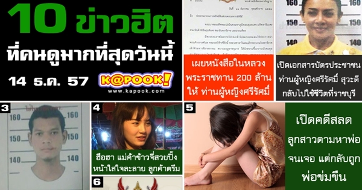 10 ข่าวฮิต ประจำเว็บไซต์ Kapook.com วันที่ 14 ธันวาคม 2557