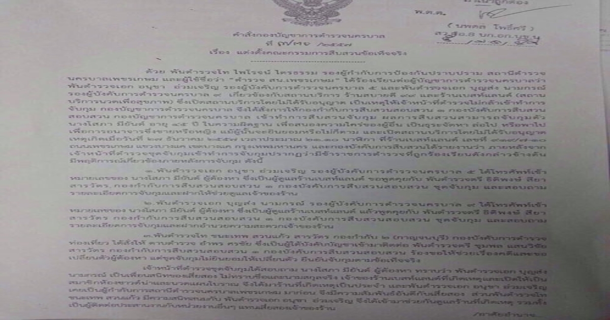 บช.น. ตั้งคณะกรรมสอบวินัย 3 นายตำรวจ วิ่งเต้นช่วยสถานบริการร้านนวดค้ากามย่านบางแค พร้อมแต่งตั้ง พล.ต.ต. จิตติ รอดบางยาง รอง ผบช.น. เป็นประธาน