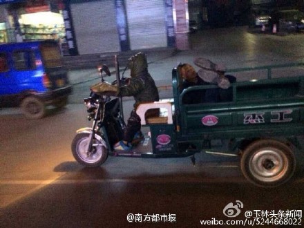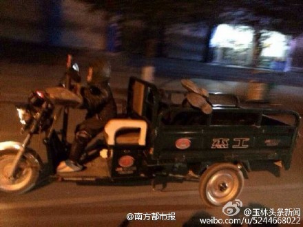 เว็บไซต์เซี่ยงไฮ้อิสต์ เผยในรายงานวันที่ 8 มกราคม 2558 ว่า ผู้เห็นเหตุการณ์ซึ่งเกิดขึ้นเมื่อคืนวันอังคารที่ผ่านมา (6 มกราคม) ที่เมืองอี้โจวของเขตปกครองตนเองกว่างซีจ้วง บอกว่า เด็กชายคนนี้ขับรถมารับตัวพ่อที่เมาแอ๋ไม่ได้สติจากการร่ำสุราหลังเลิกงาน แล้วก็พาพ่อกลับบ้าน และถ้าจะสังเกตให้ดีเขายังใส่รองเท้าสำหรับเดินในบ้านอยู่เลยด้วยซ้ำ