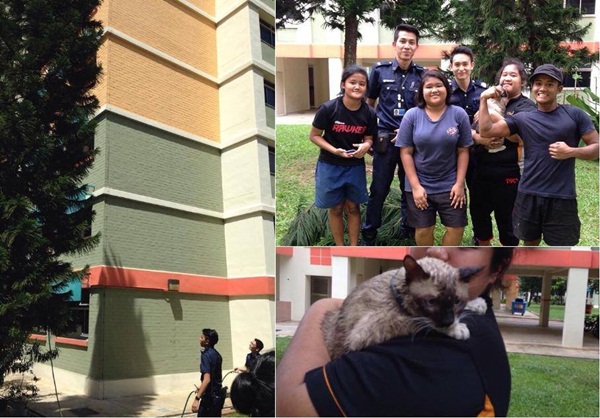 ตำรวจสิงคโปร์หน้าหล่อ-กล้ามแน่น ช่วยลูกแมวติดบนต้นไม้