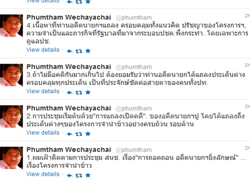 นายภูมิธรรม เวชยชัย รักษาการเลขาธิการพรรคเพื่อไทย ได้โพสต์ข้อความผ่าน ทวิตเตอร์ @phumtham" เกี่ยวกับการพิจารณาถอดถอน น.ส.ยิ่งลักษณ์ ชินวัตร อดีตนายกรัฐมนตรี ของสภานิติบัญญัติแห่งชาติ (สนช.) ว่า