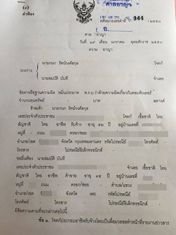 วันนี้ทนายผมยื่นฟ้องนาย "สมบัติ บับที" ในชื่อเฟซบุ๊ก Sombut Bubtee ข้อหาหมิ่นประมาท และผิด พ.ร.บ.คอมพิวเตอร์ เนื่องจากนายคนนี้ โพสต์ข้อความด่าผมมานานหลายเดือน ช่วงที่แม่ผมไม่สบาย แม่ผมเสีย มันก็ยังไม่หยุด ผมส่งข้อความทาง in box ชี้แจงว่าผมไม่ได้คุยลามกกับเมียคนอื่นทาง Line มันก็เอาข้อความผมมาโพสต์ และสรุปว่า "ผมเป็นโรคจิต บ้ากาม" และโพสต์ต่อเนื่องอีกหลายเรื่อง เช่น จัดงานใหญ่เพื่อฟอกตัวเอง (งาน Talkshow แล้วอาจารย์ยิ่งศักดิ์ถามเกี่ยวกับผู้หญิงที่ตัดต่อภาพลามก) จนถึงกล่าวหา แฟนรายการที่ติดตามข่าวของผมว่า ดูถูกตัวเอง ขาดวิจารณญาณ "เอาศักดิ์ศรีความเป็นคนไปเก็บไว้ไหน" ซึ่งเป็นการโพสต์กล่าวหาคนดูที่รุนแรงมาก