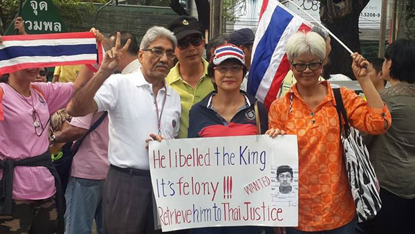 เมื่อวันที่ 23 มกราคม 2558 พล.ต. เจริญ เตชะวณิช พร้อมด้วย นพ. เหรียญทอง แน่นหนา, นายสาธิต เซกัล และประชาชนกว่า 60 คน ได้เดินทางมาที่สถานทูตนิวซีแลนด์ประจำประเทศไทย ที่ ถ.วิทยุ เพื่อส่งหนังสือเปิดผนึก กรณีนิวซีแลนด์ให้ที่พักอาศัยแก่นายเอกภพ เหลือรา (ตั้ง อาชีวะ) ผู้ต้องหาคดีหมิ่นเบื้องสูง ทั้งนี้ ทางสถานทูตฯ ได้ส่งนายแชนนอน ออสติน อุปทูตสถานเอกอัครราชทูตฯ มารับหนังสือ