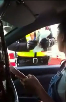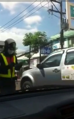 จากคลิป ตำรวจจราจรได้เดินมาหาเจ้าของรถที่จอดอยู่ข้างทางพร้อมกับใบสั่ง