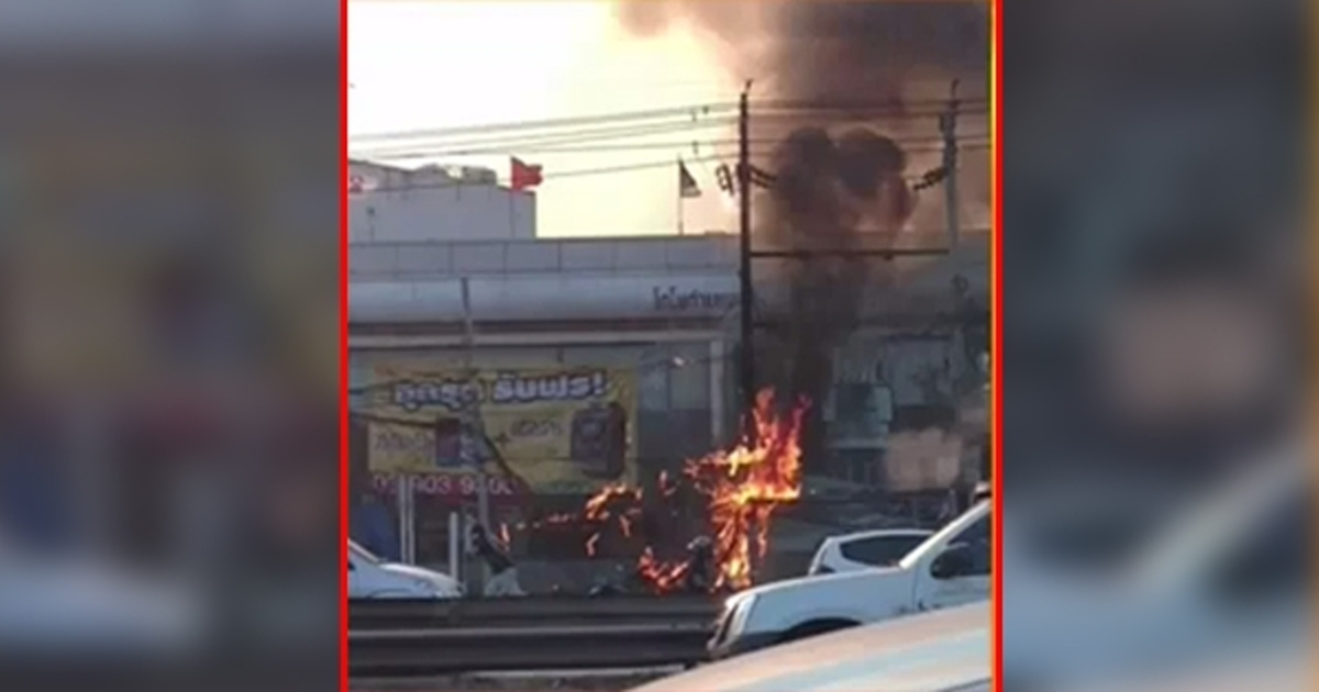 เกิดเหตุถังแก๊สหุงต้มร่วงจากรถมอเตอร์ไซค์จนระเบิด เป็นเหตุให้เกิดเพลิงไหม้ร้านค้าบริเวณใกล้เคียงและลุกลามไปถึงเสาไฟฟ้า