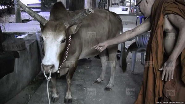 วันที่ 3 กุมภาพันธ์ 2558 ครอบครัวข่าว 3 รายงานว่า ที่วัดบ้านทุ่งสันติธรรม ตำบลเขาคราม อำเภอเมือง จังหวัดกระบี่ มีเรื่องราวสุดแปลกของวัวเพศผู้ตัวหนึ่ง อายุประมาณ 5 ปี หลังเจ้าของได้นำวัวตัวดังกล่าวมาถวายกับหลวงพ่อรวย หรือ พระครูวิทิตศาสนกิจ เจ้าอาวาสวัดบ้านทุ่งสันติธรรม เนื่องจากวัวตัวนี้เจ้าของได้ให้คนเชือดทั้งใช้ปืนยิง และใช้มีดเชือดคอ ก็ไม่สามารถฆ่ามันได้ สุดท้ายจึงนำมาถวายวัด ซึ่งหลังจาก หลวงพ่อรวย รับวัวตัวดังกล่าวมาและเชื่อว่าวัวตัวนี้เป็นพญาโคที่มีความพิเศษ ก็ได้สร้างคอกให้อยู่บริเวณหน้ากุฏิ พร้อมกับนำหญ้าและน้ำเตรียมไว้ให้ ซึ่งหลังมีข่าวแพร่ออกไป ได้มีชาวบ้านทั้งในพื้นที่และละแวกใกล้เคียง ต่างสนใจเดินทางมาดูวัวพิเศษตัวนี้และบางรายก็นำหญ้ามาบริจาคเป็นอาหารสำหรับวัวตัวนี้ด้วย