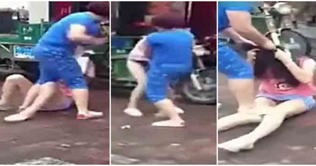 โดยคลิปที่ได้รับการเผยแพร่จากประเทศจีนนี้ เผยให้เห็นสาวใหญ่ที่สวมชุดสีน้ำเงิน กำลังยืนตบกิ๊กสาวที่อยู่ในสภาพกึ่งนั่งกึ่งนอนอยู่บนพื้นถนน