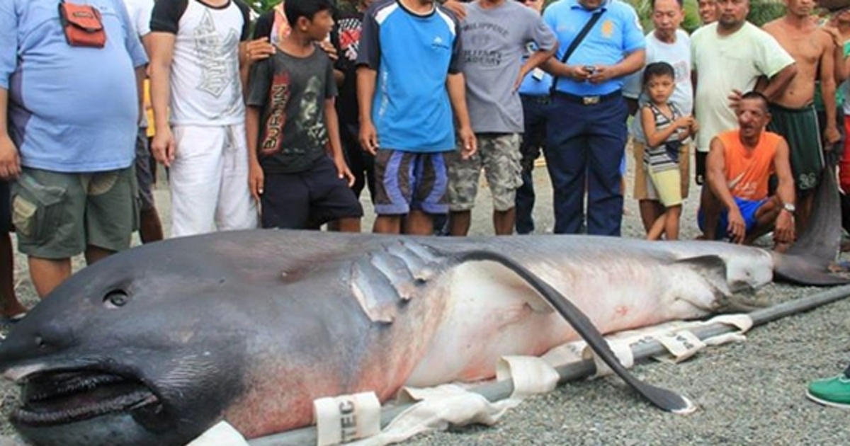 ชาวประมงในประเทศฟิลิปปินส์ พบฉลามปากยักษ์ (Megamouth shark) พันธุ์หายาก เกยตื้นบนชายหาด
