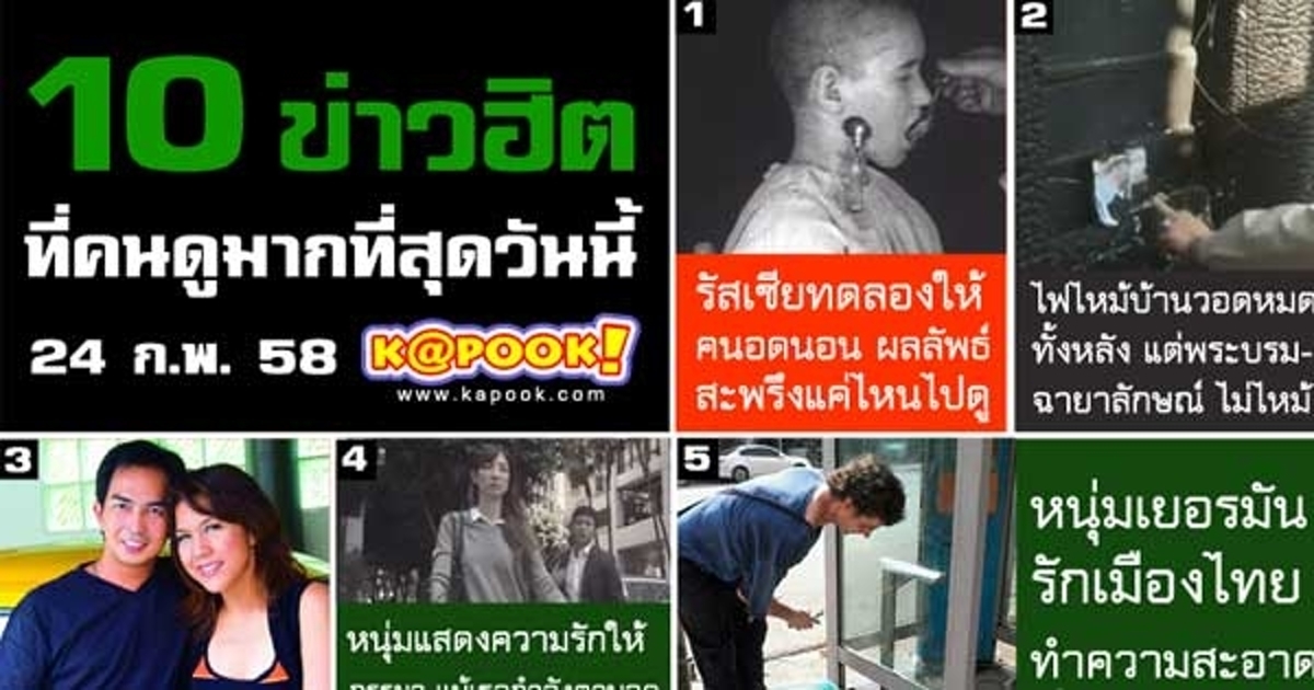 ข่าวฮิตประจำวันนี้ เป็นเรื่องของ เรื่องเล่าสุดช็อก หลังรัสเซียให้คนอดนอน ผลลัพธ์ที่ออกมาสุดสะพรึง ขณะเดียวกันก็มีข่าว พระบรมฉายาลักษณ์ ในบ้านที่เกิดเหตุไฟไหม้ ไม่ไหม้