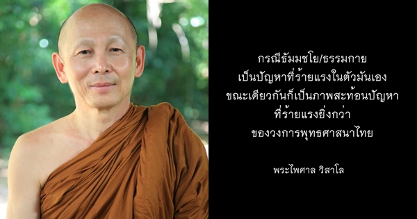 วันที่ 25 กุมภาพันธ์ 2558 พระไพศาล วิสาโล เจ้าอาวาสวัดป่าสุคะโต อำเภอแก้งคร้อ จังหวัดชัยภูมิ พระนักเผยแผ่ที่เป็นที่รู้จักดีรูปหนึ่งของเมืองไทย ได้โพสต์ข้อความผ่านเฟซบุ๊ก Phra Paisal Visalo ระบุถึง "กรณีธัมมชโย/ธรรมกาย" ว่า เป็นปัญหาที่ร้ายแรงในตัวเอง และรวมถึงเป็นภาพสะท้อนปัญหาที่ร้ายแรงยิ่งกว่าของวงการพุทธศาสนาไทย พร้อมชี้ข้อบกพร่องระบบการปกครองคณะสงฆ์ในปัจจุบัน ที่รวมศูนย์อำนาจมาไว้ที่คนเพียง 20 คน โดยไม่มีกลไกการตรวจสอบ ขาดความโปร่งใส จนมีช่องโหว่ ทำให้ ธัมมชโย สามารถแผ่อำนาจและเครือข่ายไปอย่างกว้างขวาง