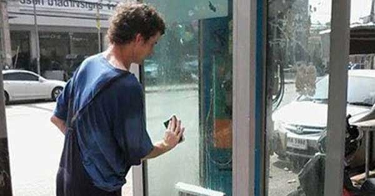 หนุ่มเยอรมันเช็ดตู้โทรศัพท์ในอุดรฯ บอกรักเมืองไทยมาก เห็นตู้โทรศัพท์สกปรกเลยทำความสะอาดให้ พร้อมกวาดพื้นให้ด้วย เผย ทำแบบนี้มา 5 ปีแล้ว และจะมาทำให้อีกทุกปี