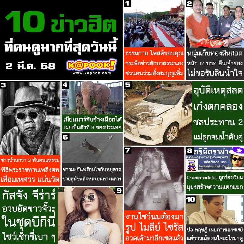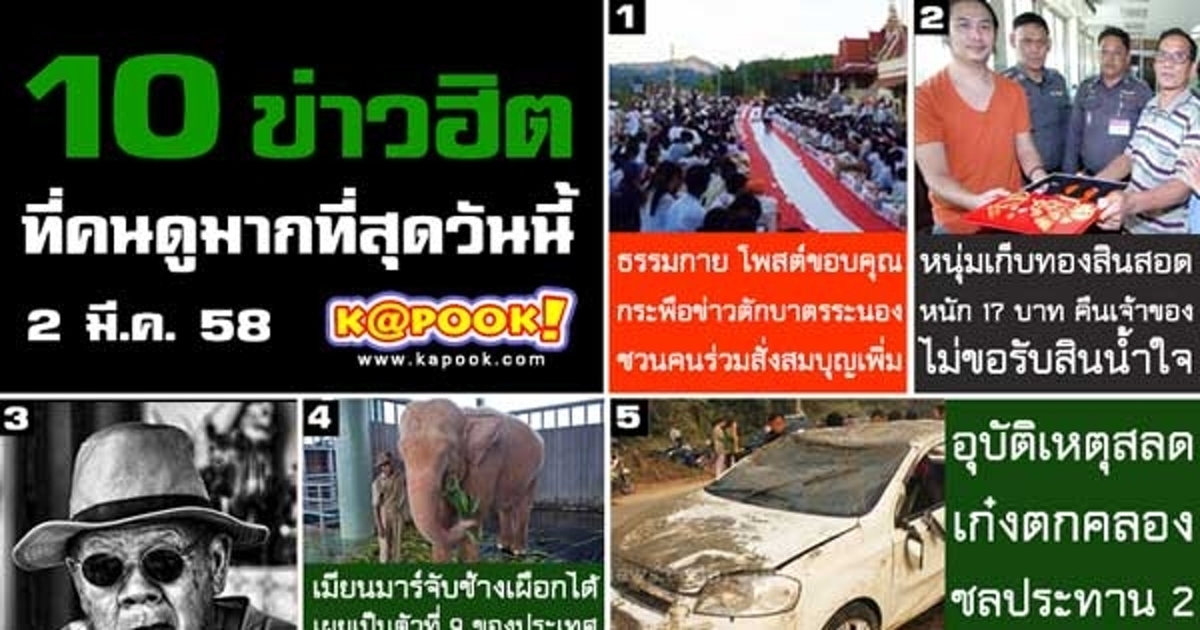 ข่าวฮิตประจำวันนี้ ยังเป็นเรื่องของวัดพระธรรมกาย ที่โพสต์ขอบคุณกระพือข่าวตักบาตรระนอง และข่าวอื่น ๆ อีกมากมายหลายหมวดข่าว