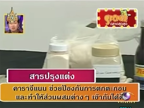 โดยจากคลิปที่ถูกส่งต่อกันทั่วโลกออนไลน์ในขณะนี้ เป็นเทปบันทึกภาพรายการ Sponge ฉลาดสุดสุด ซึ่งได้ออกอากาศไปเมื่อเดือนกันยายน 2554 เผยให้เห็นว่าแท้ที่จริงแล้วครีมเทียมที่หอมหวาน เพิ่มความมันและกลมกล่อมให้แก่เครื่องดื่มถ้วยโปรดของเรานั้น ผลิตขึ้นจากสารปรุงแต่ง 8 อย่าง ประกอบด้วย