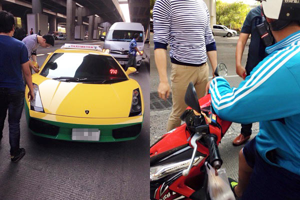 สืบเนื่องจากกรณีรถซูเปอร์คาร์สุดหรูอย่าง แลมโบกินี่ ที่ถูกเจ้าของนำมาแต่งรถล้อเลียนเป็นแท็กซี่สีเขียว-เหลืองทั้งคัน พร้อมเขียนข้างรถว่า TAXI HISO-LIFE จนเป็นที่ฮือฮาไปทั่วโซเชียล ก่อนเกิดเป็นประเด็นขึ้นมาเมื่อรถแท็กซี่ไฮโซคันนี้ได้ถูกรถจักรยานยนต์ขับมาเฉี่ยวกระจกมองข้างฝั่งขวาหัก ทำให้ชาวเน็ตต่างแสดงความสงสารคนขับรถจักรยานยนต์ที่มาเฉี่ยวชนรถหรู ที่มีราคาสูงจนต่อให้ขายรถจักรยานยนต์ทั้งคันก็ยังไม่พอต่อค่าซ่อมเลยนั้น