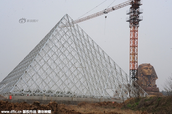 โดยเมื่อวันที่ 16 มีนาคม 2558 เว็บไซต์เซี่ยงไฮ้อีสท์ มีรายงานว่า การก่อสร้างสิ่งปลูกสร้างอันโด่งดังจากอียิปต์ยังคงเดินหน้าต่อไป ในพื้นที่จัดงานเอ็กซ์โปมรดกทางวัฒนธรรมของโลก ในเมืองชูโจว หลังเมื่อ 2 สัปดาห์ก่อนเพิ่งจะมีภาพของมหาสฟิงซ์จำลองที่สร้างเกือบเสร็จในพื้นที่ดังกล่าวปรากฏไปทั่วสื่อออนไลน์ จนทำให้หลายฝ่ายออกมาโจมตีเรื่องการลอกเลียนแบบของจีน พร้อมขอให้รัฐบาลจีนเข้ามาดูแล
