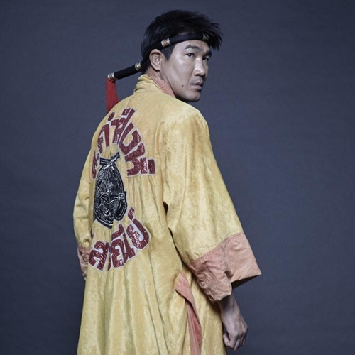 "งานไหว้ครูเมื่อวานครับ หลายคนบอกผมว่ามงคลแต่ละสีได้จับลำดับความสำคัญไว้แล้ว สีทองคือสูงสุดที่ต้องคู่ควรกับปรมาจารย์ สีที่ผมใส่สีขาวแค่นักมวยเพิ่งเริ่มต้น สำหรับผมแล้วแค่ผ้าถุงของแม่ก็เอามาเป็นมงคลได้ครับ ไม่จำเป็นต้องสีไหนหรอกครับ มันอยู่ที่การเรียนรู้ เคารพและศรัทธา ไม่ได้โม้"
