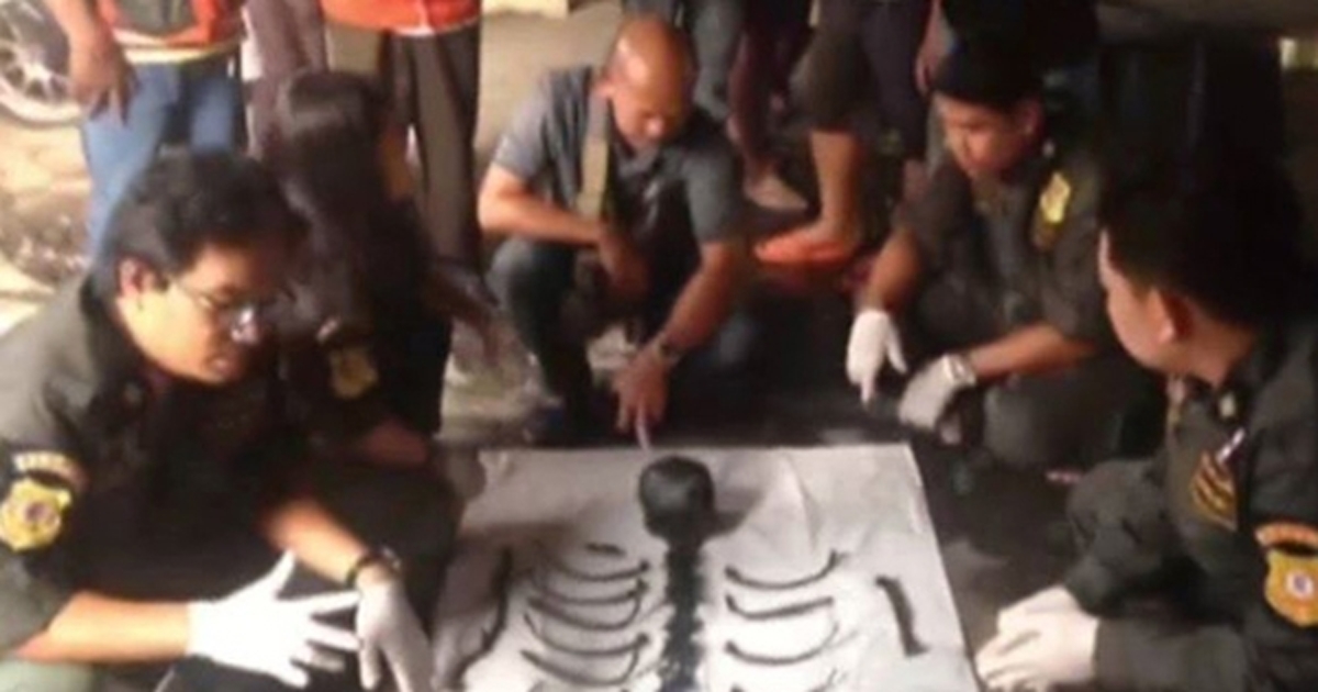 โดยจากการตรวจสอบเบื้องต้นพบโครงกระดูกดังกล่าวจมอยู่ในบ่อลึกประมาณ 10 เมตร สภาพสมบูรณ์ครบทุกส่วน มีเสื้อกล้ามสีเขียว กางเกงขาดำ สามส่วน แต่ยังไม่สามารถระบุเพศได้ จากการตรวจสอบกะโหลกมีลักษณะถูกของแข็งทุบจนแตก เป็นรูกว้างประมาณ 5 เซนติเมตร และยังพบรูบนกะโหลกอีก 2 รู เจ้าหน้าที่จึงเก็บไว้เป็นหลักฐาน