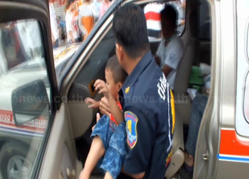 ในที่เกิดเหตุพบชาวบ้านกำลังนำประแจมาไขนอตล้อหน้าจักรยาน ซึ่งเท้าขวาของเด็กติดอยู่บริเวณตะเกียบล้อหน้า เป็นเด็กชายชาวกัมพูชา อายุ 4 ขวบ ร้องไห้ด้วยความเจ็บปวด โดยมี นางดาว ประโคน อายุ 28 ปี แม่เด็กคอยปลอบลูกชายทั้งน้ำตา จากนั้น 5 นาที ก็สามารถช่วยเหลือนำเท้าของเด็กออกมาได้ เจ้าหน้าที่อาสาฯ จึงนำตัวส่งต่อ รพ.พระปกเกล้าจันทบุรี เพื่อรักษาอาการบาดเจ็บต่อไป